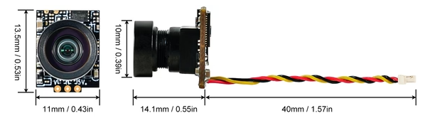 Specification - Image Sensor: 1/3" CMOS Sensor - Horizontal: 1200TVL with Global WDR - Signal System: NTSC (4:3) - Lens : 2.1mm(M7) FOV 160° - Dimension: 1114.113.5mm - Net weight: 1.45g