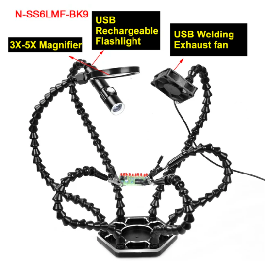 Третья рука (штатив с четырьмя крокодилами, лупой и вентилятором)