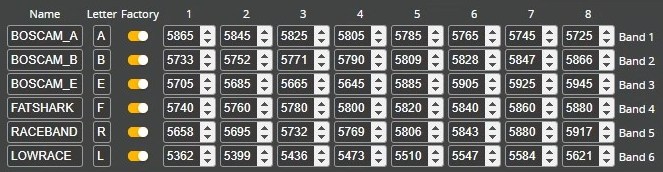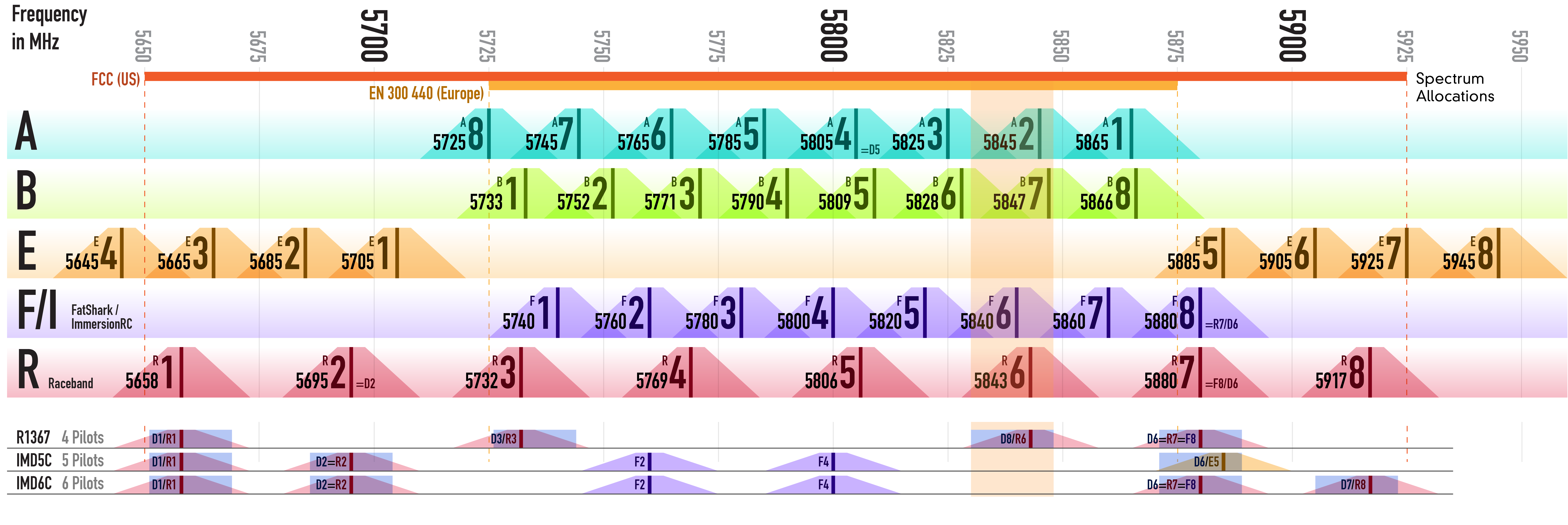 band. Частоты начинаются в районе 5300. Теоретически лучше проникновение, да и для vtx повышение частоты может быть сопряжено с падением мощности. При этом антенны должны быть эффективны на данной частоте, а они и в стандартной сетке не всегда соответствуют ожиданиям.