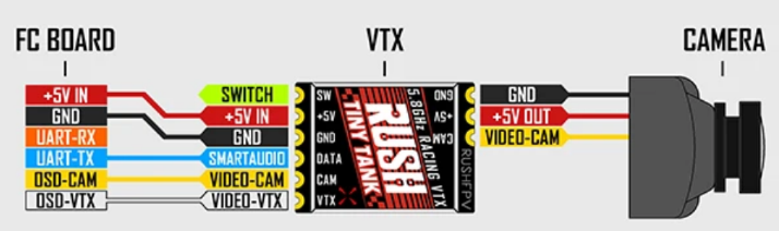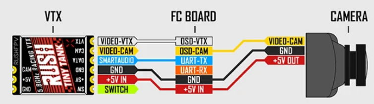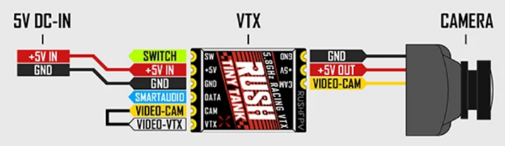 Вот вариант схемы на примере RUSHFPV TINY TANK Nano VTX