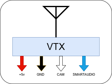 В общем случае видеопередатчик (VTX) имеет четыре вывода: