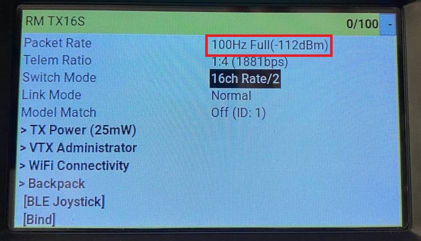 Дрон оснащён приёмником ELRS (например, Happymodel EP1/EP2, BetaFPV Micro RX и т.п.)