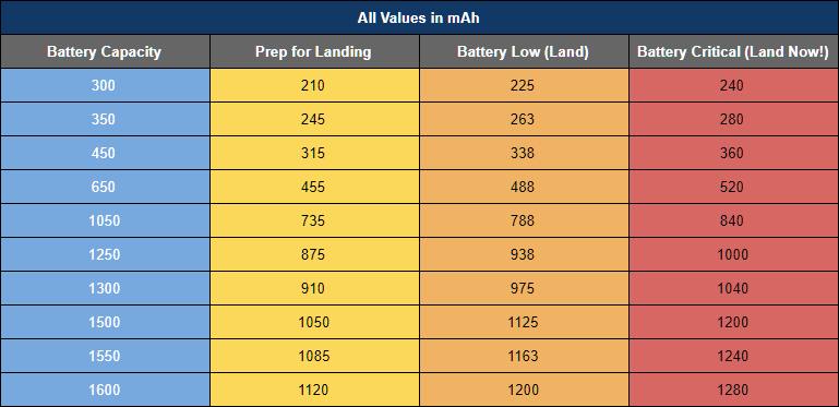 Ниже представлена таблица, показывающая критические значения уровней расхода батареи в зависимости от ее емкости.