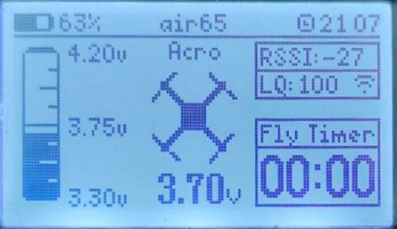 Пример экрана телеметрии, когда дрон рядом с пультом:
