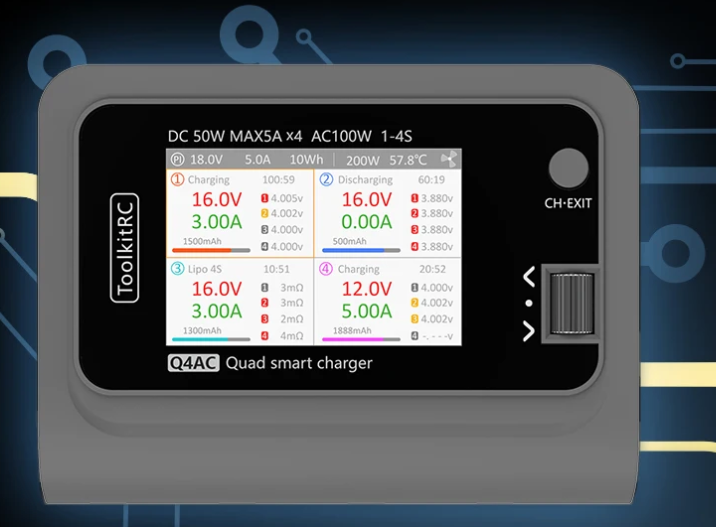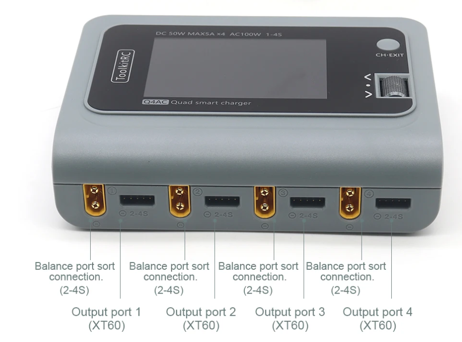 Одновременная зарядка четырех 1-4S батарей зарядка с коннектором XT60.