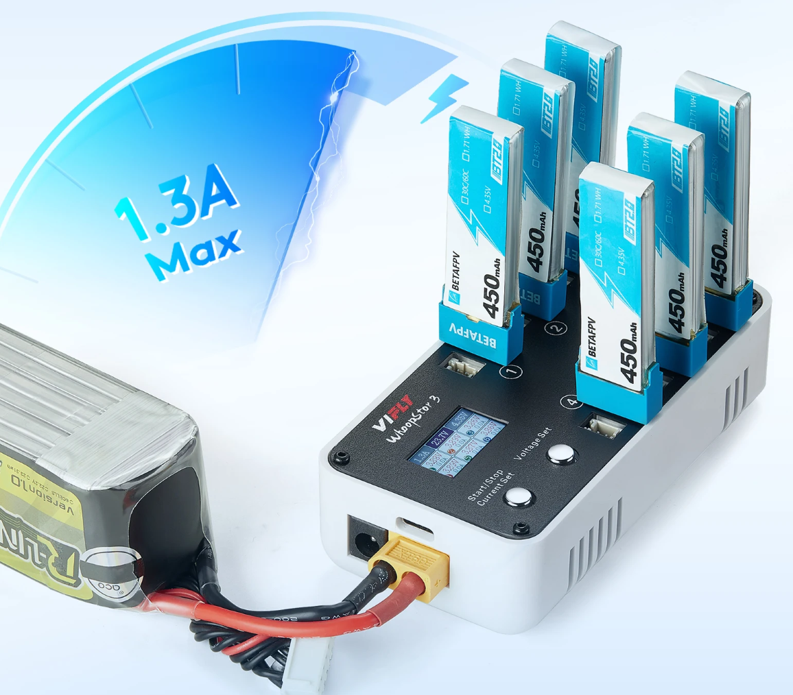 Одновременная зарядка шести 1S батарей зарядка с коннекторами BT2.0 или PH2.0.