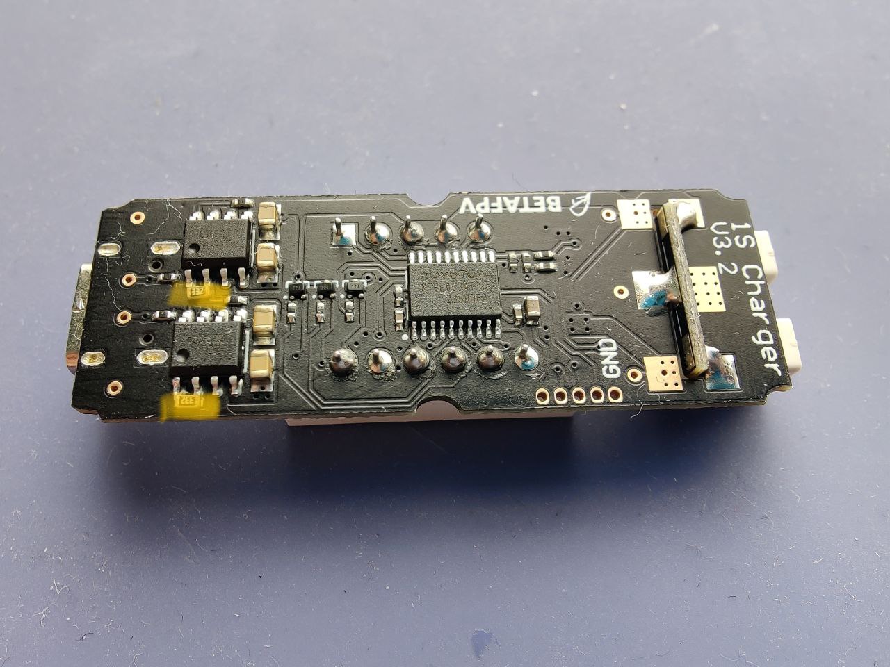 Чтобы штатная зарядка цетусов/метеоров не убивала ваши батки током 1А, нужно заменить эти два резистора (отмечены желтым). Если поставить 2.4кОм, ток будет 500мА. Я поставил 3.3кОм, у меня ток 370мА - достаточно для зарядки GNB 380mah.